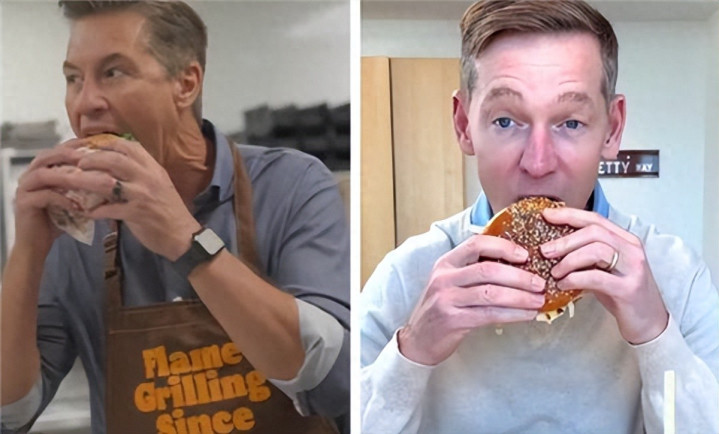 其北好意思区总裁汤姆・柯蒂斯发布视频,身着围裙大口狠咬皇堡,吃适应然尽兴,配文“重播一下”,开云暗讽意味拉满,视频播放量飞速破百万,酿成浓烈反差传播。