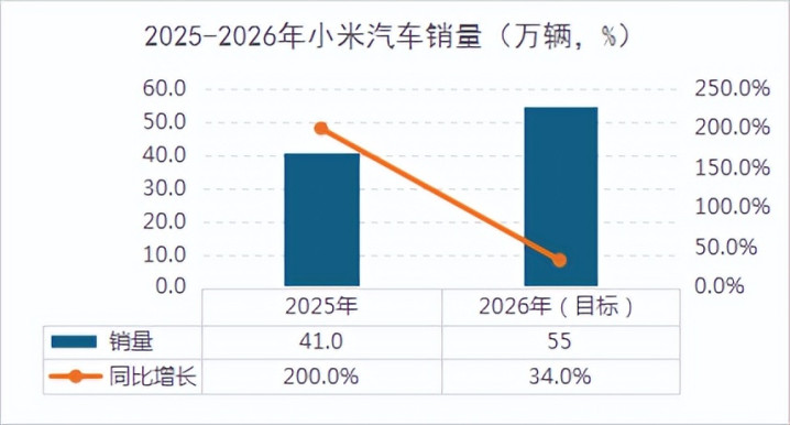 咱们先来望望2025年小米汽车的销量情况。把柄乘联会的数据,2025年,小米汽车销量达到41万辆,同比增长超200%。要是按照这个增速来看2026年55万辆的销量概念,其相较于25年要终了34.1%的同比增速并不激进,以至可以说终点感性,单纯从数据角度,终了这一概念应该是没什么问题。