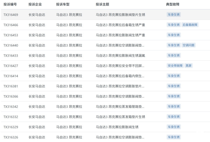 开云 车主集中投诉, 马自达3 昂克赛拉生锈风波愈演愈烈