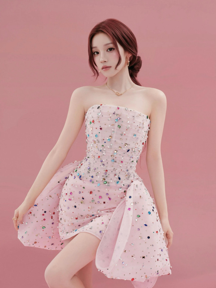 开云官方体育app官网 宋雨琦, 粉色蓬蓬裙。
