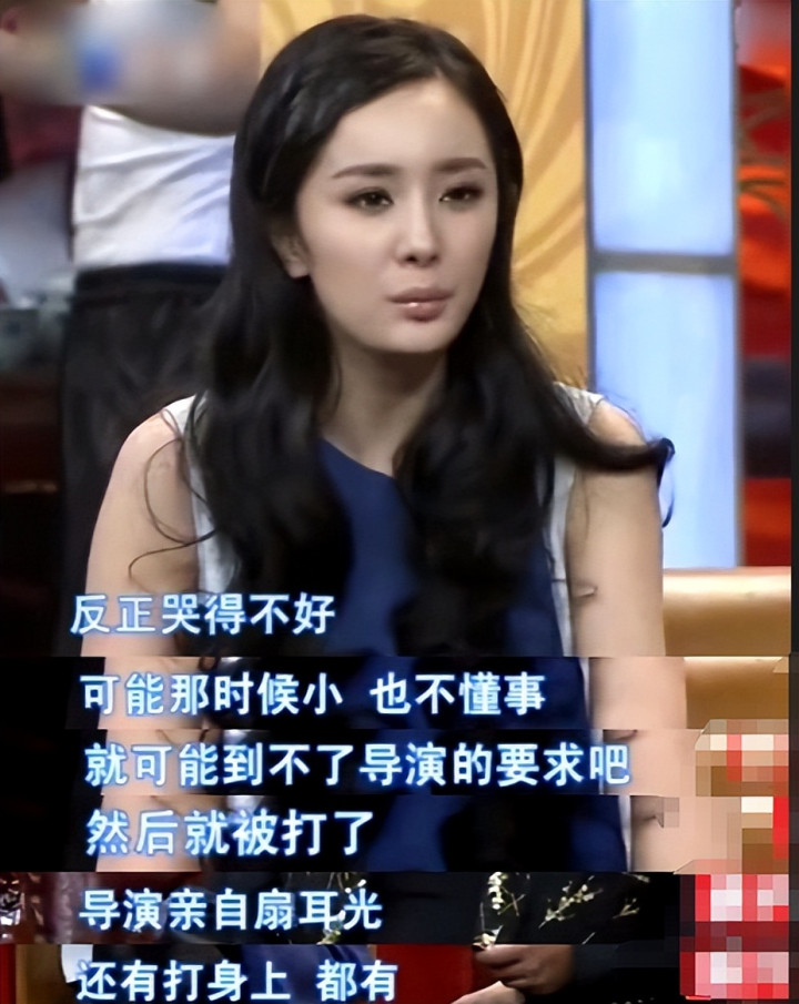 杨幂也有过雷同的碰到。十五六岁拍哭戏演不出来,导演就地扇她一耳光,接着又打她身上。