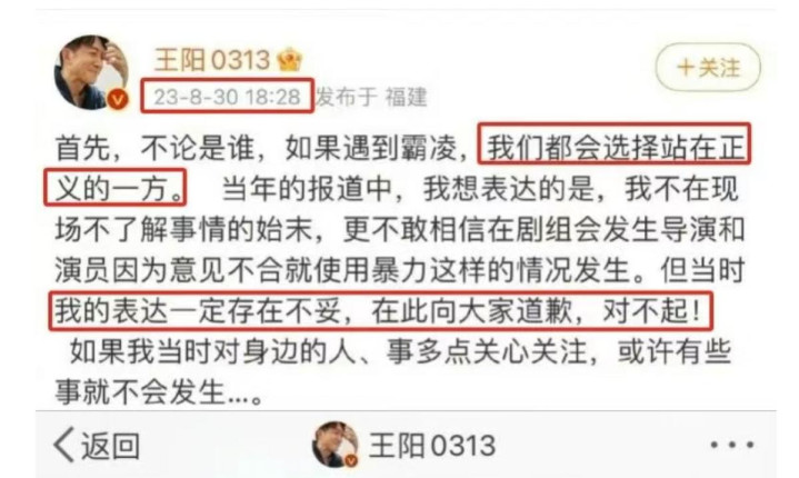 但王阳真是不知说念我方错了吗?他概况仅仅不肯意承认,不肯意为我方当年的举止讲求完了。