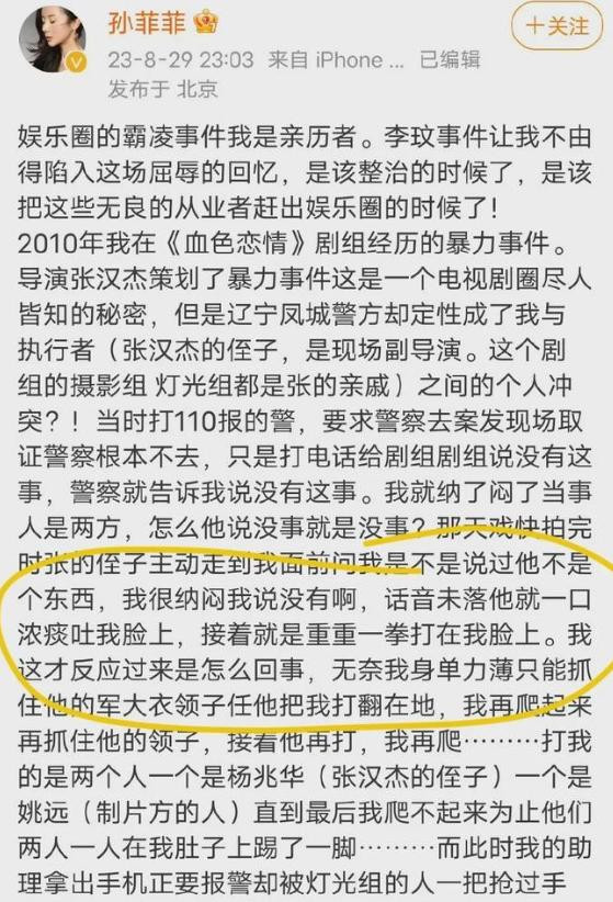 孙菲菲的长文,像一颗炸弹,在文娱圈炸开了锅。