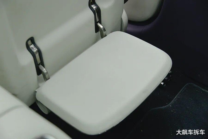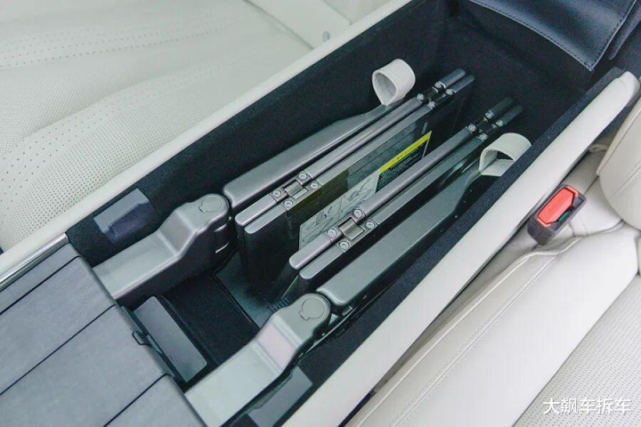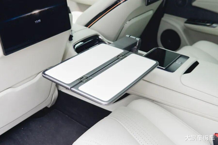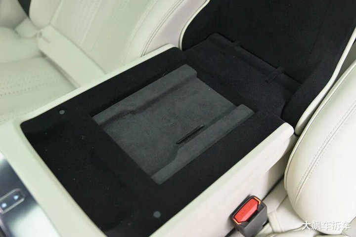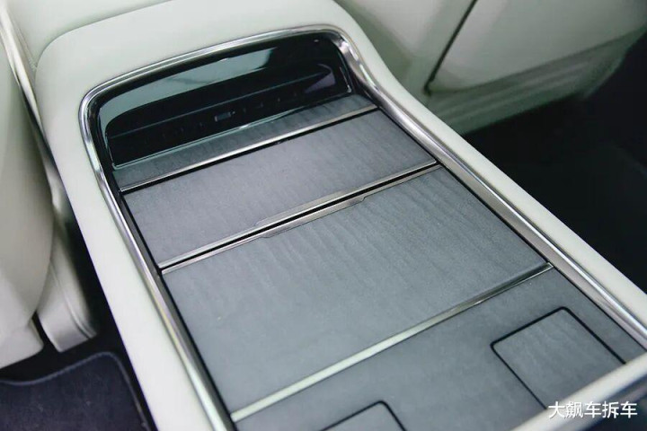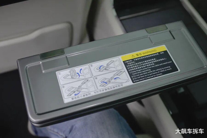 后方扶手箱打开之后,内藏有小桌板,但必须要按照步骤完整操作,否则可能会磕到后排屏幕。