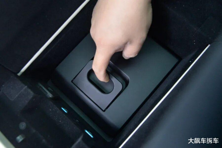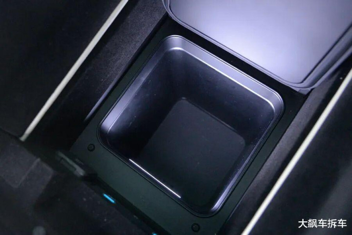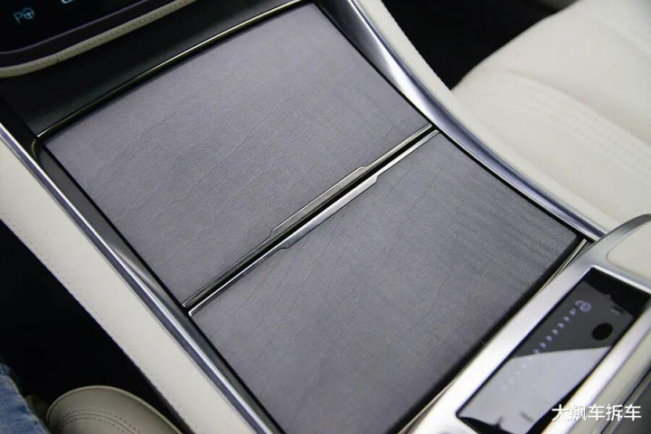 屏幕下方大的储物空间可以封闭起来,类似老款特斯拉的设计。