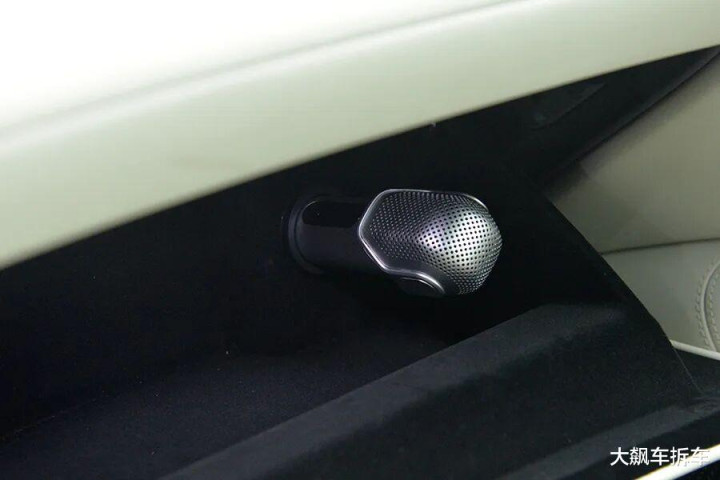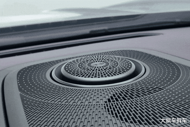 这辆车的中央扬声器可以旋转打开和关闭,很有仪式感。