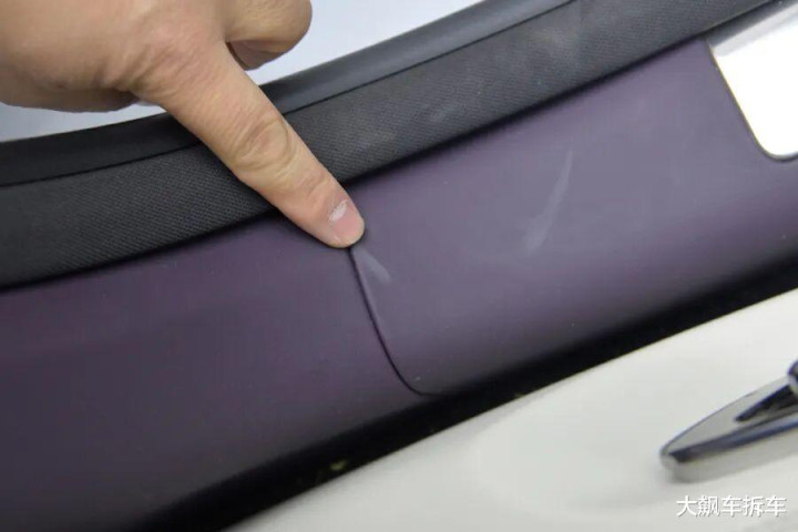 A柱部分的扬声器金属罩,倒角防划伤工艺就没有了,可能这里是摸不到的位置。