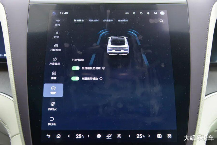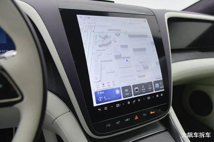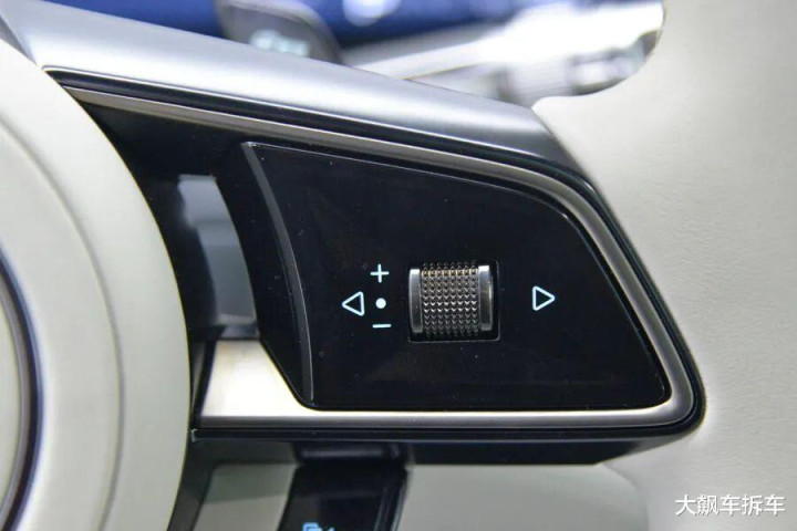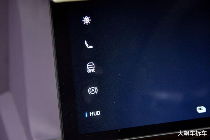 液晶仪表屏最左侧设计了一竖列虚拟按键,可以调节灯光、HUD、座椅、驾驶模式以及自动驻车,有点类似于别克的设计。