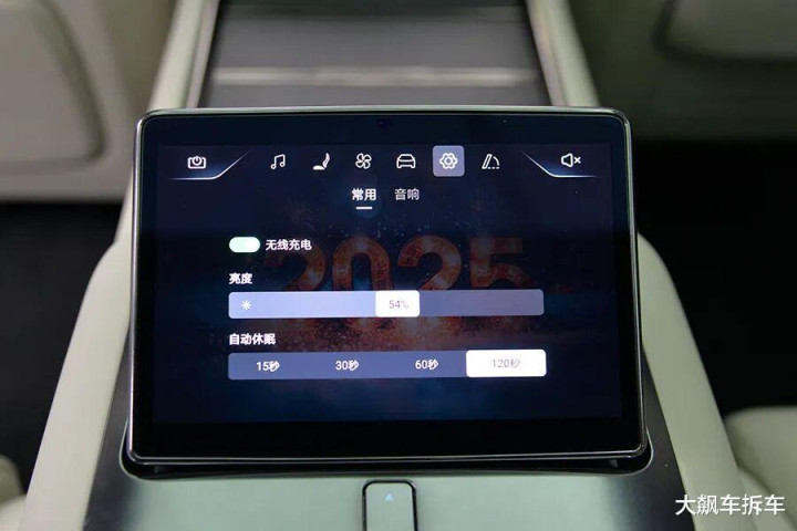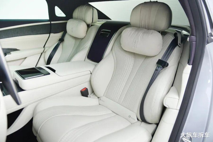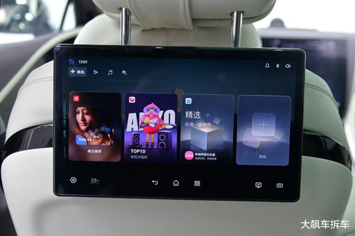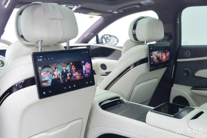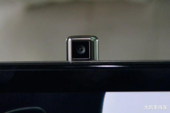 前排座椅靠背后方各有一个后排娱乐屏,实际上就是个平板电脑,顶部还有一个可伸缩的摄像头,支持自拍。