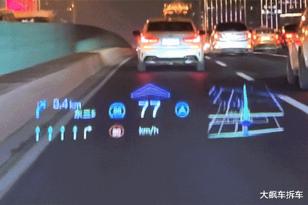 这辆车配有AR-HUD功能,并没有采用LCD投射,而是使用了DLP技术投射。车载DLP实际上更具优势,尤其是避免阳光倒灌导致LCD烧毁。但劣势也比较明显,因为DLP的光线是非偏振光,所以相对更容易重影。此外,DLP需要对整个PGU光机进行更好的散热处理,尤其LED三色光源,否则芯片受热会导致画面偏色。
