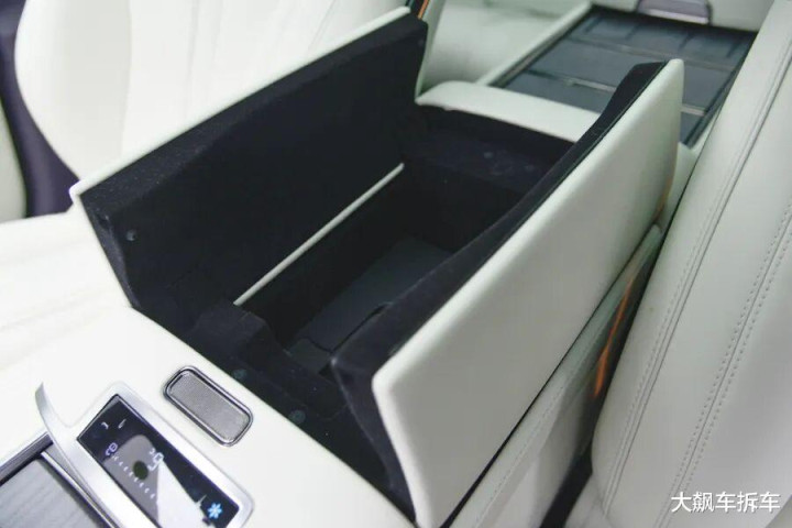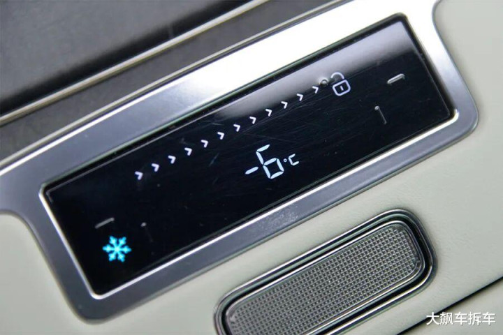 此外,中央扶手箱下方配有一个冷暖冰箱,可以在扶手箱的面板进行温度调节。