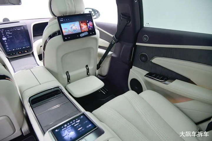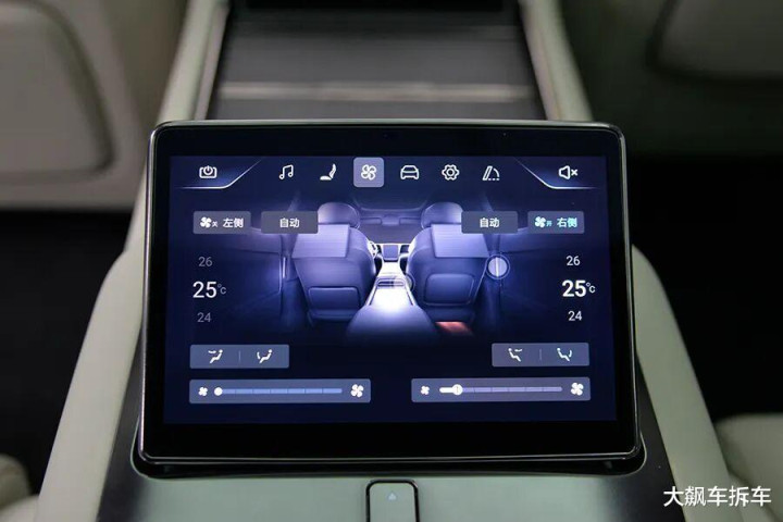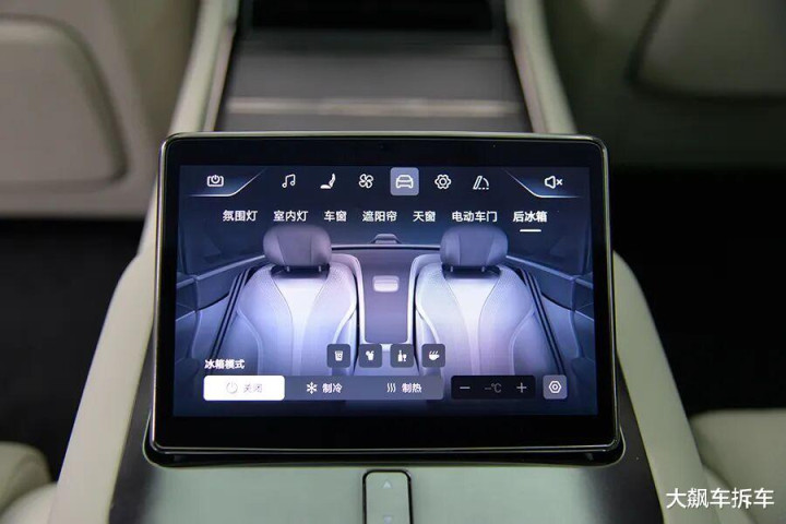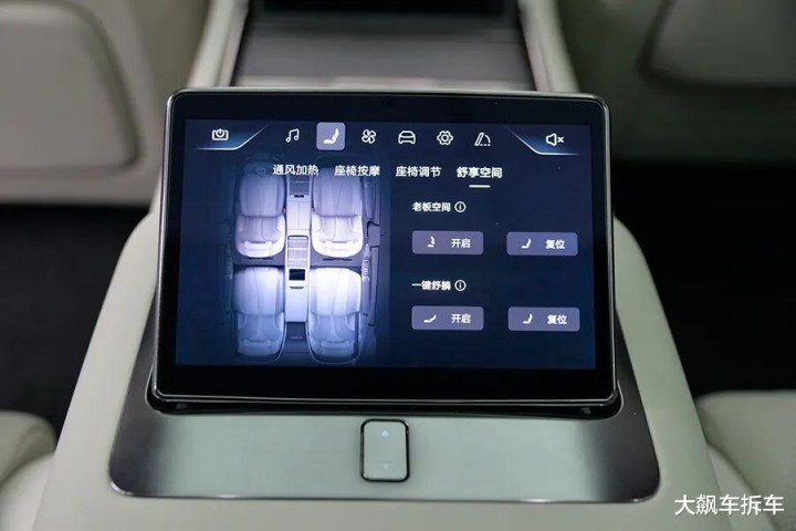 后排中央扶手有一个可升降的液晶屏,可以控制后排座椅、空调、车门、车窗……