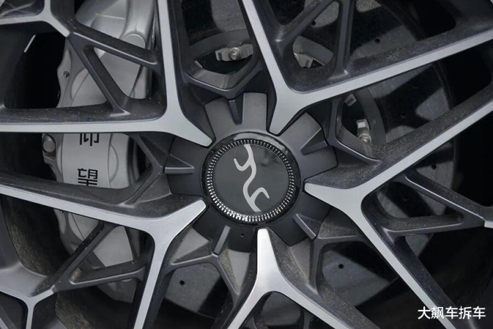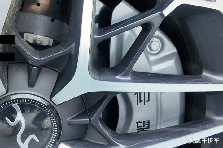 这辆车和小米SU7 Ultra一样,也是碳陶刹车盘,供应商也是金博KBC,卡钳是布雷博的六活塞卡钳。