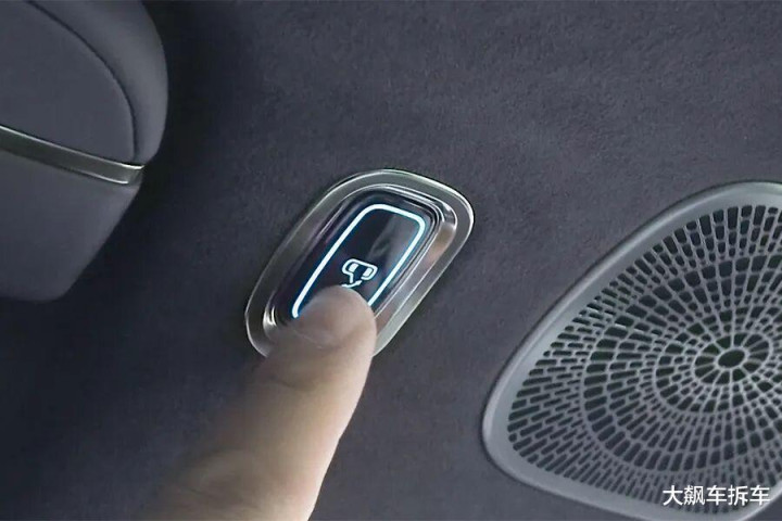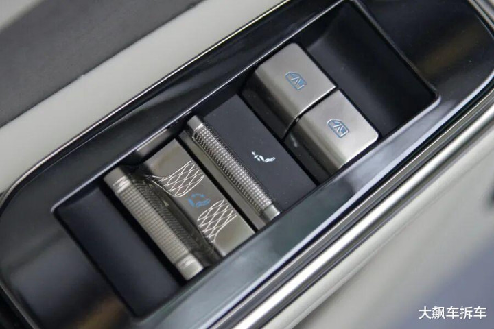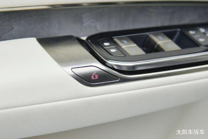这辆车与腾势N9一样,车门内饰板上的解锁按键,只是一个“解锁”,不会自动开门,因为有电机阻力存在,所以需要非常用力向外推才能开门。如果你想电动开关门,需要按头顶的按键,有点不方便。