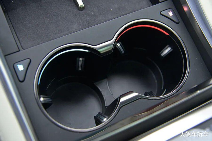 手机充电面板后方有两个水杯架,带有冷暖功能。