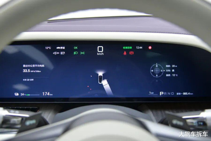 这辆车的液晶仪表盘尺寸为23.6寸,相当大!显示内容比较丰富,只是字号大小与之前的比亚迪一样,有些偏小。