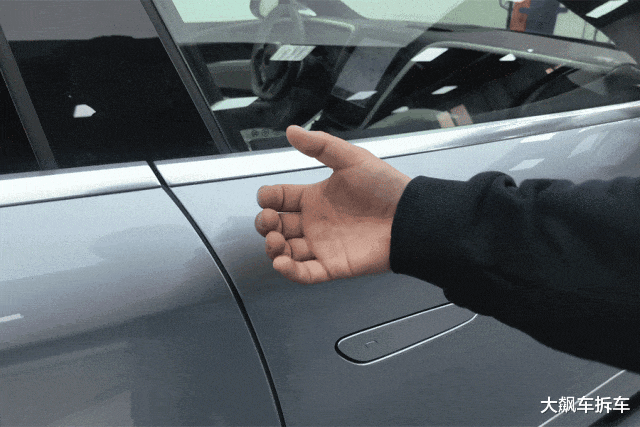 车门把手是隐藏设计,一般情况是电子解锁,向外使劲拉拽,就能启用机械解锁。