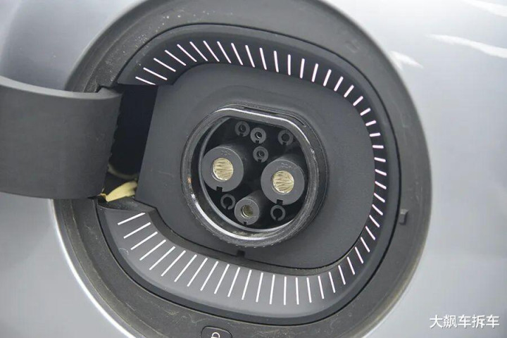 这辆车左右后翼子板都配有充电口,有两个快充口,支持“双枪充电”。如果公共充电桩比较紧张,不建议使用“双枪充电”。