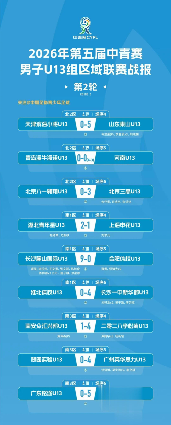 开云官方体育app 第五届中青赛|男人U13组区域联赛第2轮赛果