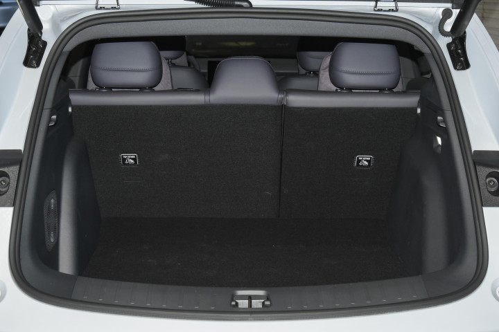 储物空间的设计同样贴心,全车共有25处储物空间,日常小物件都能找到合适的储存空间;后备厢的表现更是超出预期,采用掀背式设计,常规容积达到435L,实测能轻松容纳两个28寸行李箱+一个婴儿车,日常采购或周末露营的装备都能轻松装下。如果需要装载更大件的物品,放倒后排座椅后,后备厢容积可拓展至1400L,实用性大幅提升。有二胎车主分享,之前担心纯电轿跑空间不足,无法满足家庭出行需求,但实际使用后发现,Lafa5的后备厢装下婴儿车、玩具箱和露营装备完全没问题,空间表现远超预期。