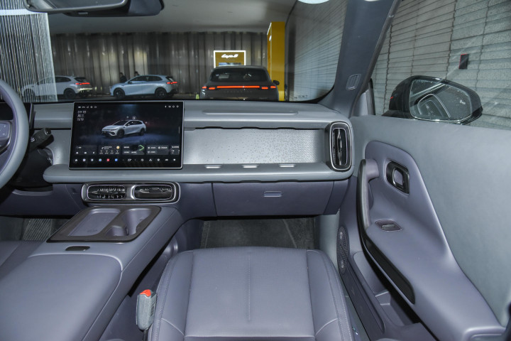 除了材质上的越级,Lafa5的内饰设计也兼顾了简约与实用。车内采用极简风格,没有多余的物理按键,8.8英寸液晶仪表+14.6英寸2.5K中控屏的组合,让操作区域更加集中,屏幕分辨率极高,即便在阳光直射下也能清晰显示。中控屏搭载的Leapmotor OS 4.0 Plus车机系统,支持Carlink/HiCar互联,操作流畅度值得称赞。其中,515 Max和605 Max版本配备了SA8295P芯片,这种常用于高端智能座舱的芯片,让车机操作手感接近旗舰手机,滑动屏幕、打开应用都没有卡顿感;即使是入门的Pro版本,搭载的SA8155P芯片也能满足日常使用需求,不会出现明显的操作延迟。