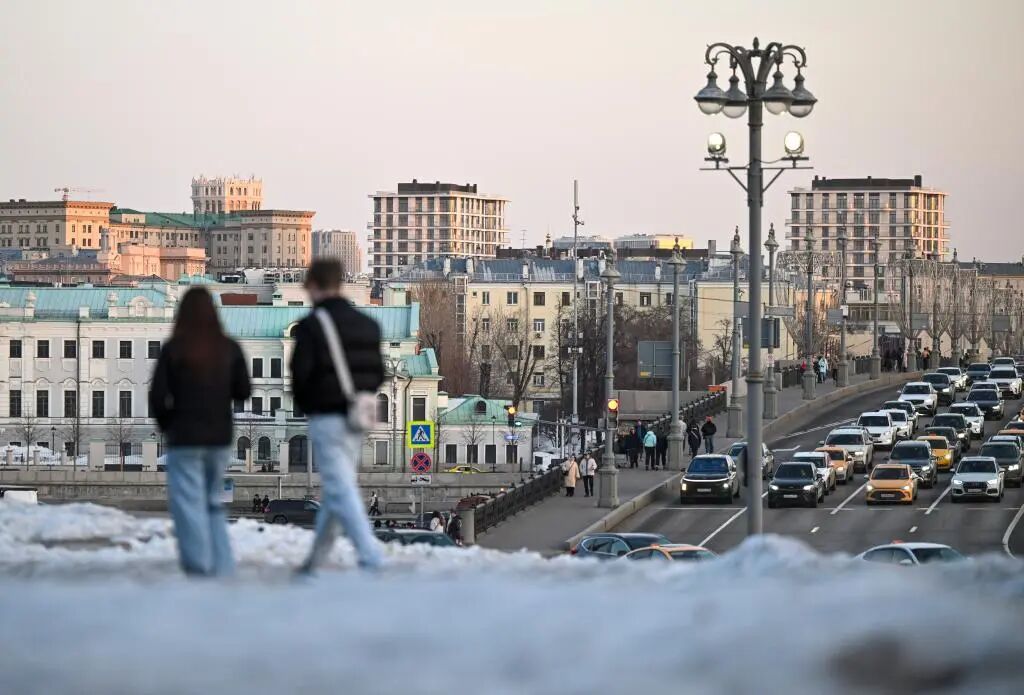3月15日,东谈主们走在俄罗斯莫斯科街头。新华社记者 郝建伟 摄